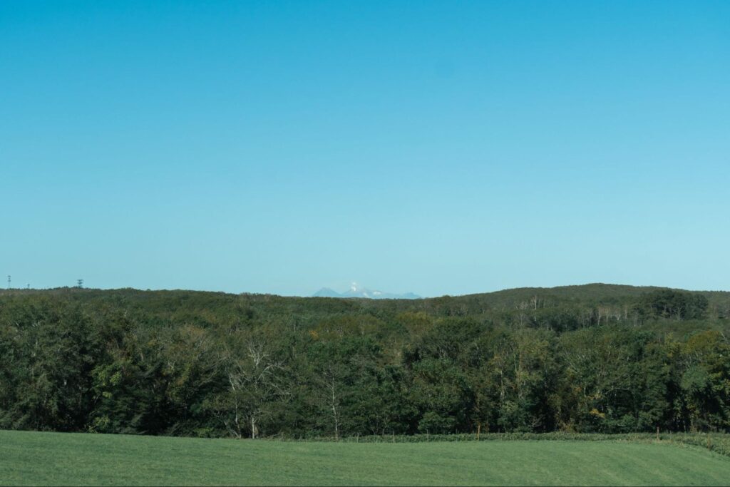 まさに秋晴れという空と緑のコントラスト、そしてその奥には噴煙を上げる雌阿寒岳の姿もはっきりと見えました。写真には写っていないですが、弟子屈エリアの山々そして斜里岳も見ることができます。